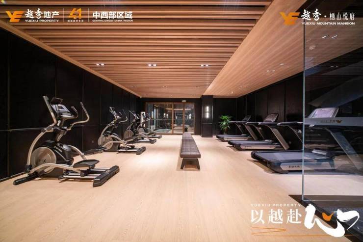 健身房采用天花格栅吊顶、地面运动地板、墙面隔音墙板材料进行装饰,还贴心设有更衣室,健身器械均为国际一线品牌舒华,跑步机、椭圆仪等设备一应俱全。还有专门为女性业主打造的一个瑜伽房,下楼即可健身运动。
