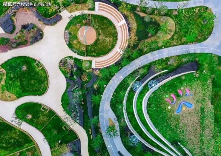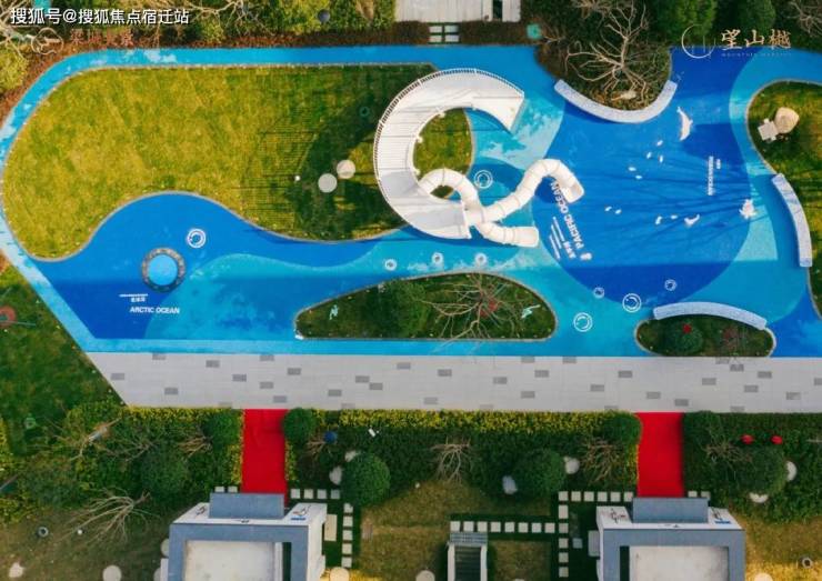 以水元素为蓝本,提取水之行韵,同时引入山丘的形态元素和层峦叠错的构成,经艺术提炼解构重组,既有开敞的草坪也有层次丰富的组团,精心筑造景观园林空间。