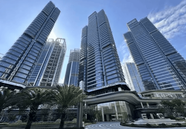 大平层总建筑面积约 16 万方,由高端住宅、精品商业及配套设施构成,是区域内极具辨识度的综合性地标项目。整体建筑采用现代极简主义风格,外立面以大面积 Low-E 玻璃幕墙搭配金属铝板线条,兼具时尚感与通透感,在阳光下熠熠生辉,成为城市天际线的重要组成部分。
