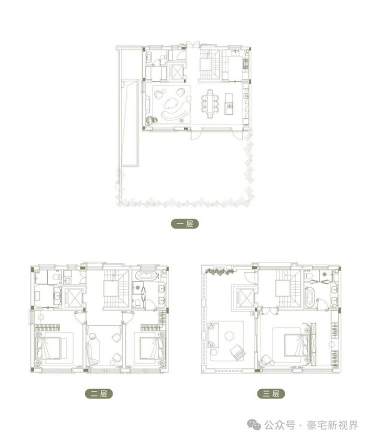 超高的实用率:户型为地上3层+地下2层+阁楼,建面约249-318㎡,但实际使用面积远超建筑面积。地下空间可打造影音室、健身房等,利用率很高。
