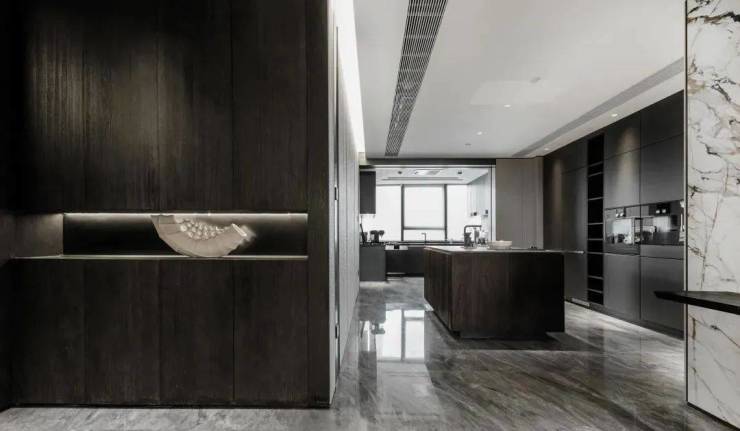 约440㎡“宝格丽”东边套,则化身黑与白的经典碰撞。喜马拉雅灰大理石和拉丝橡木饰面的丝丝入扣,诠释了不同材质的平衡之美。不论精装品牌或用材工艺,项目极尽高配之能事,装标达惊人的约15000元/㎡。