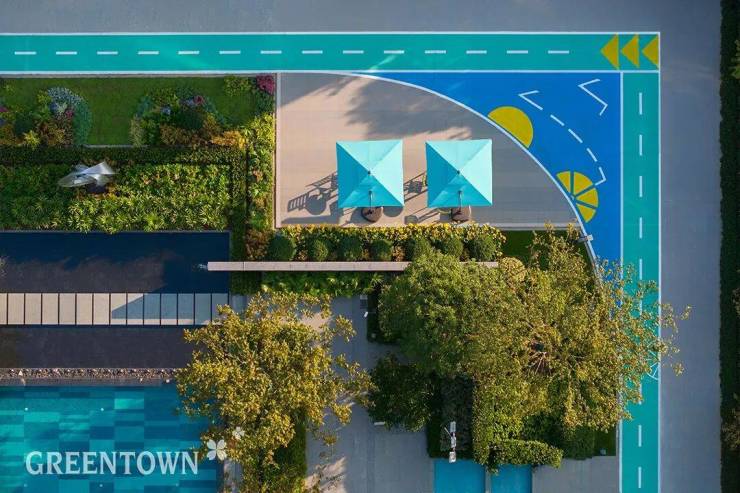 绿城标志性的泳池,同样融山贯水,成为可嬉戏、游赏的日常。