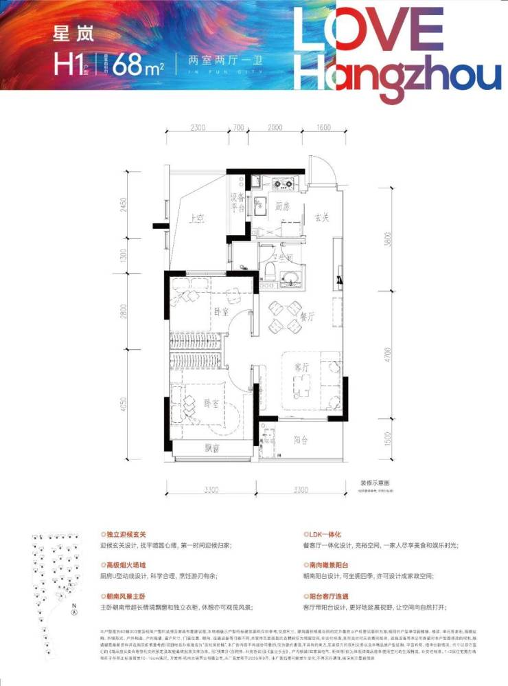 ❍建面约 仅33席两房两厅1卫户型(62#)