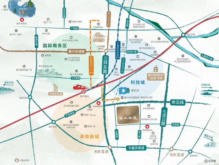 近邻嘉兴高铁南站,坐享轨电车T6、T7号线(规划中)、S11乍嘉苏高速等高效丰富的出行体系