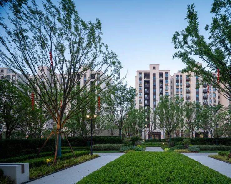入户花境以月季、绣球、鼠尾草等品种为主,采用层次明显、留白清晰的搭配手法沿带状配置,增强了场地空间的围合性和植物间的呼吸感,仿佛是一片私密的绿洲,让居民在此享受片刻的宁静。