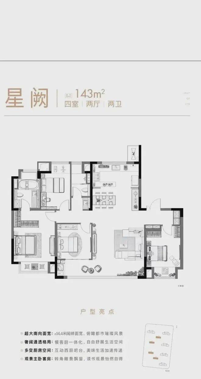项目占地面积约3.1万方,规划9栋14-17层小高层住宅,总计466户,建筑面积约99-143㎡三房、四房纯粹宽境舒居,宜居舒适。