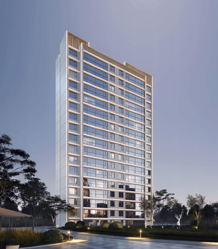 冠顶运用中式古典元素,竖向格栅以及现代元素金属,做到了朦胧优雅不沉闷,创造出光与影的朦胧之美,尽显建筑的和谐、韵律之美。