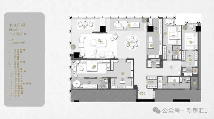 :容积率2.3,绿化率35%,打造“一轴三园”景观体系,含恒温泳池、架空层泛会所等设施。