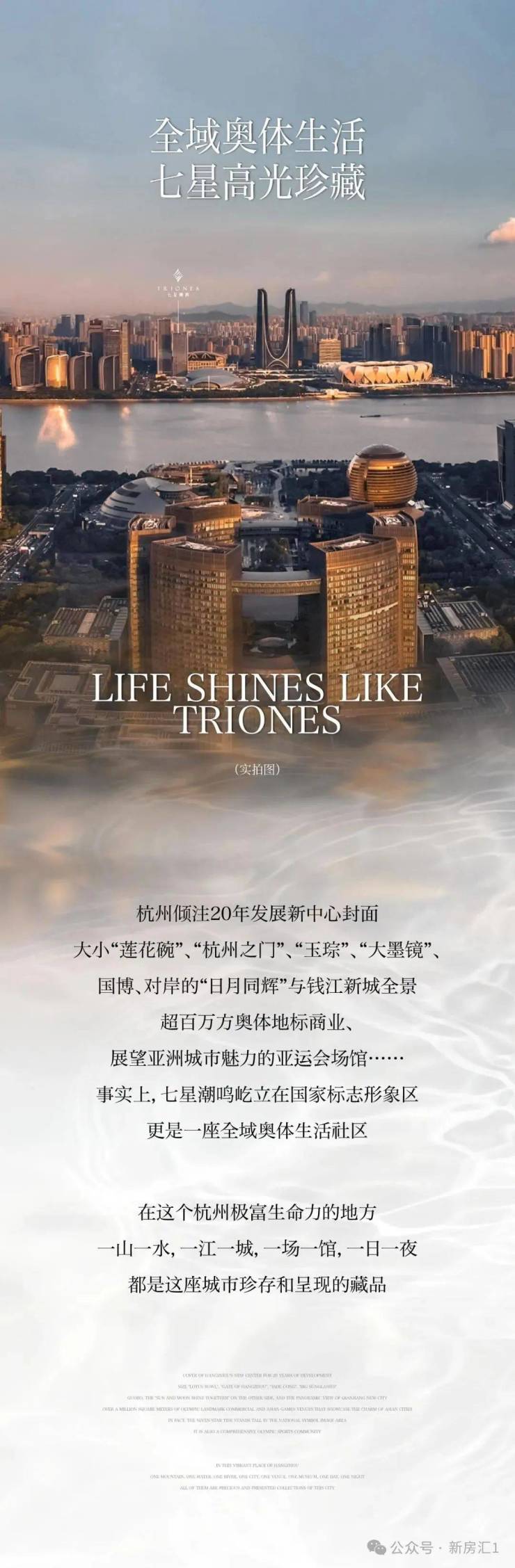 奥体板块是杭州“拥江发展”战略的核心承载区,定位为“国际滨”的升级版,未来将集聚总部经济、数字经济和国际会展功能。七星潮鸣的区位直接受益于区域规划升级。