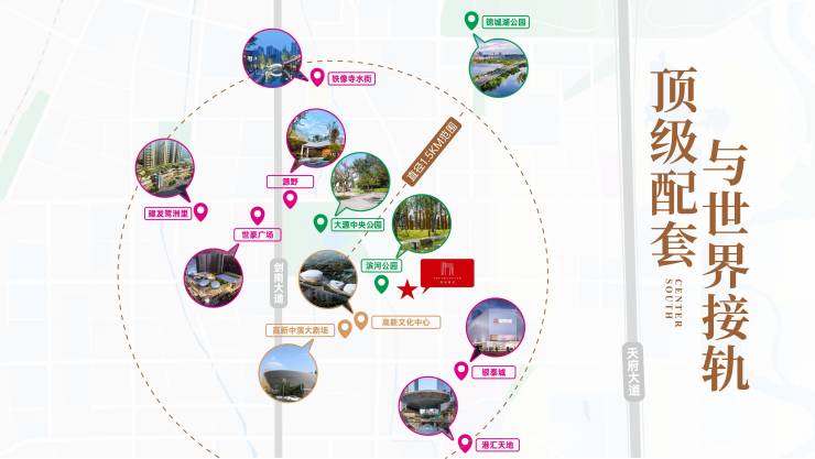 项目所在高新区中央居住中心——大源板块的天府3街,同时占据中央商务区、中央金融区、中央居住区三区之芯,是城南发展的重要中心,地段价值无法复制,地段价值超过物业本身。