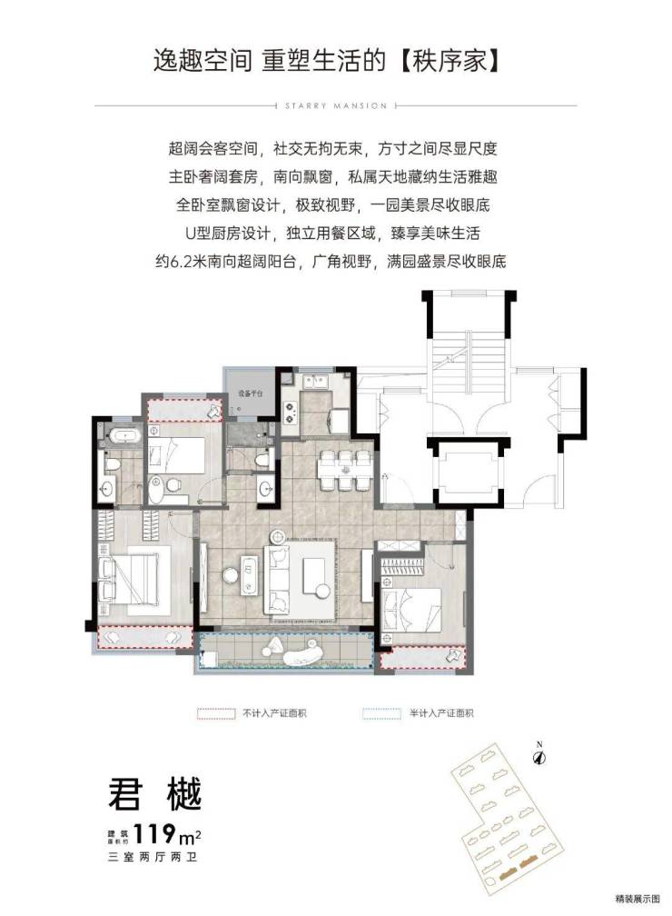 入户处到餐客厅、卧室、书房,再到阳台,以全方位考量,从点滴细节出发,多重人性化设计,严苛至极的品质雕琢,营造更舒适便捷的生活。