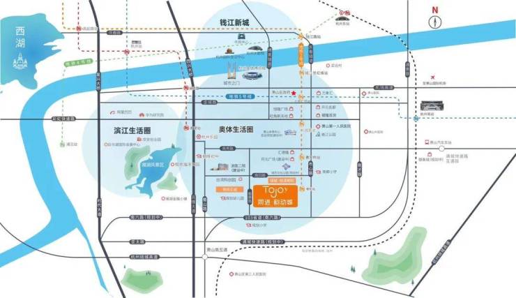 项目地处萧山奥体南部新城板块,紧邻亚运会南面,定义为杭州十字发展线路的南部窗口。这里,将成为杭州南部新城的核心区域,引领区域发展。