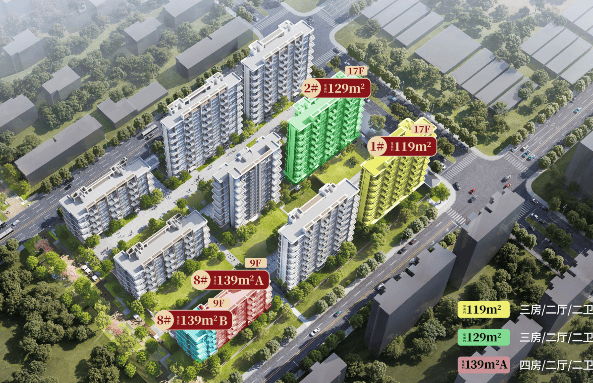 •户型规划:建面约119、129㎡小高层、建面约139㎡洋房、建面约188㎡墅质大平层
