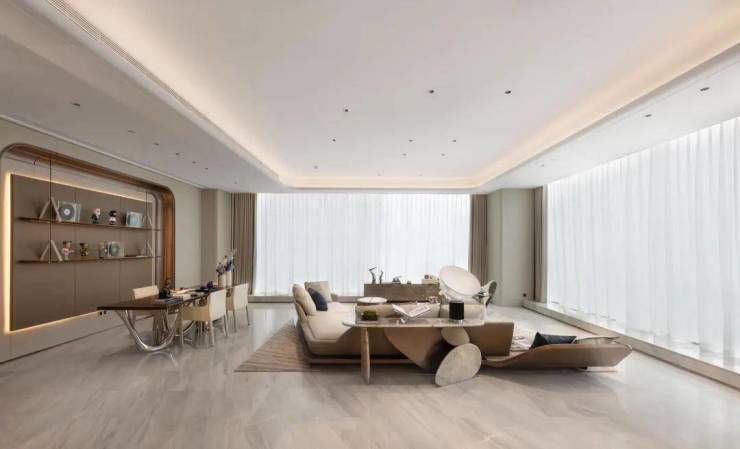 室内设计上,用现代的元素与艺术的视角,将简洁、丰富、有意境的场景氛围融入到居住空间中,兼具雍容典雅与实用主义,奢华但不浮夸,呈现出一种自由、洒脱而赋有品质的生活意境,简洁的空间,精致的摆件,塑造了舒适时尚的空间,奢雅之余也彰显了大平层的生活精髓与空间气度。