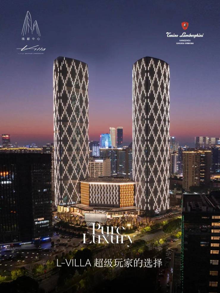 是杭州之门后,奥体落成的海拔第二高双塔(约250米),外号“小杭州之门”。瑰郦中心L-VILLA位于T2塔楼,12层的裙楼就是托尼洛·兰博基尼酒店。