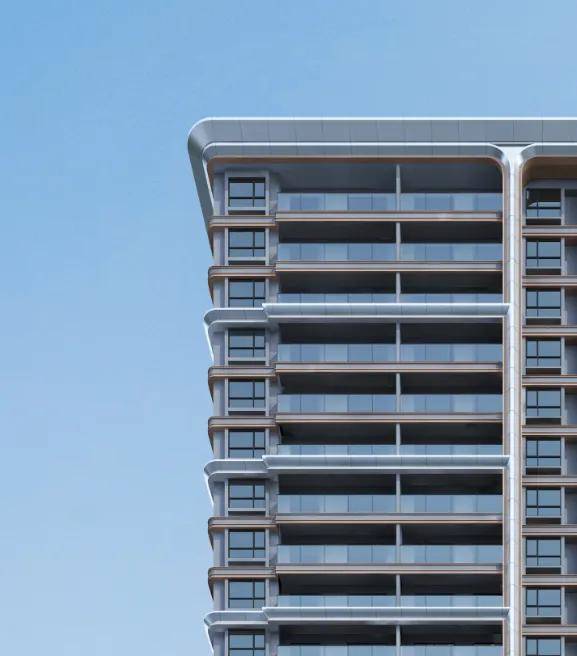 宁波的城市基因里有着变革和创新的“弄潮”精神,如何通过可见的视觉语言表达,让人们感受宁波城市的精神内核。能建·百誉府,精雕细刻的柔和曲线飘板设计,犹如飞鸟展翼,刻画灵动的流线韵律,呈现力量与美学的完美结合,以修长挺拔的建筑形态筑就宁波城市的“天穹之光”,既是对宁波帮“敢为天下先”的传承,也是对天际线的独特塑造。