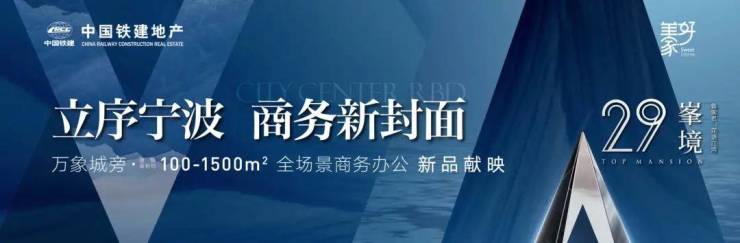 中国铁建地产,以8载深耕的诚挚心意,致敬宁波。从青秀澜湾,至花语江湾,海语天下到东境润府,中国铁建以央企的雄心与实力,为宁波铸就一部部经典作品;与宁波共进,中铁建全力打造一席29峯境,成就商务新封面