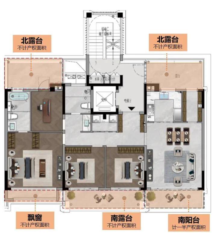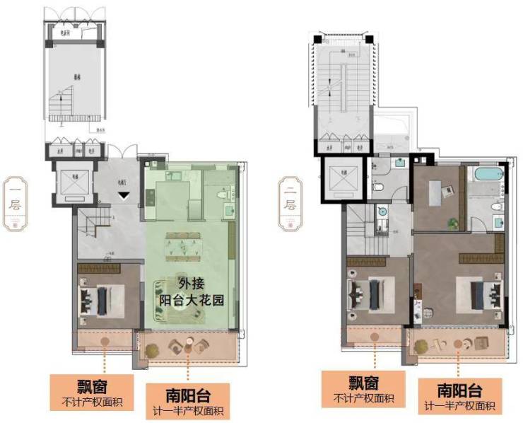 2、南北双露台的中叠再升级!扩大露台进深!延展对外空间!