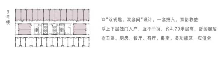 一期总建面约17万方,户型面积建面约27-38-72㎡全功能LOFT公寓“双钥匙、双套间“设计,一套投入,双倍收益上下层独门入户,互不干扰,约4.79米层高,总价50万起!舒阔起居卫浴、厨房、餐厅、客厅、卧室、多功能区一应俱全!目前仅接受预约咨询!
