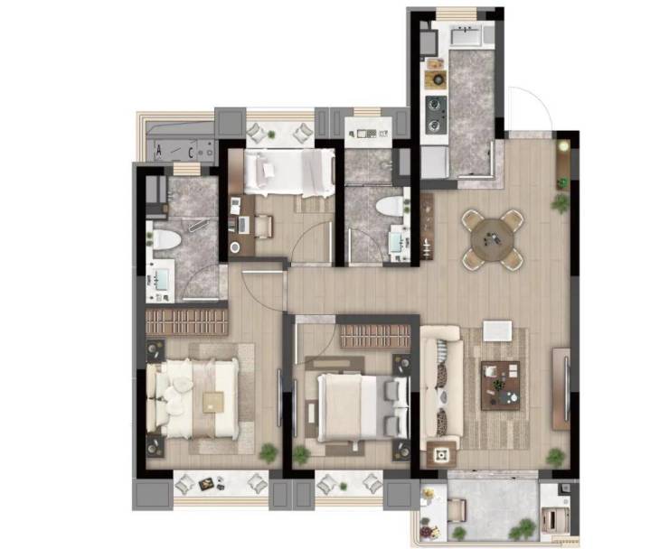 E户型 建面约88㎡ 三室两厅一卫