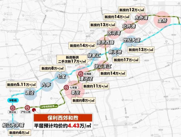 12号线(含在建延伸段)贯穿莘庄、七宝、漕河泾、徐汇滨江、北外滩、东外滩等板块,一直到浦东金色中环带的金桥副中心。