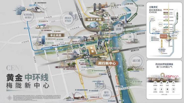 万科中铁建·朗拾|花语 项目属于闵行梅陇板块,位于外环旁;项目靠近外环,紧邻梅陇镇政府,为15号线虹梅南路站地铁上盖。