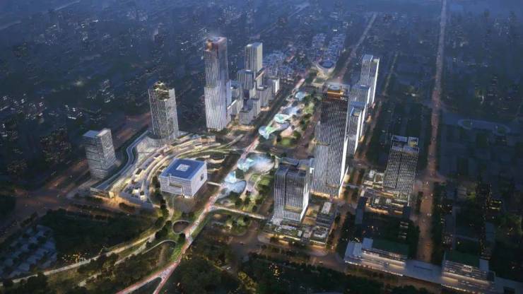 约220米科技贸易中心 ,与星辰穹顶并肩,尽述金华的时代雄心。总体量约10.8万方,未来将作为浙中与“一带一路”国家对外交流的高能级贸易总部,聚焦中欧、中非的深层合作,强化科技成果交流交易的功能,科技贸易上下游配套企业集聚。