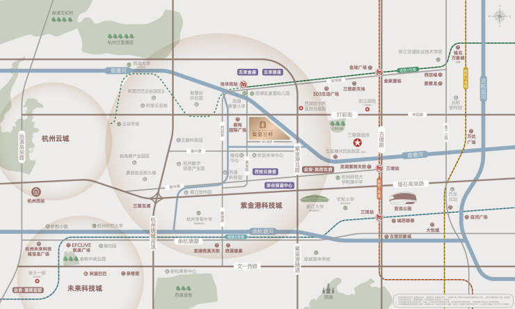 紫金港科技城,南接西溪湿地,北靠兰里景区,西连未来科技城、云城,东融市区主城,扼守城西科创大走廊东门户,浙大紫金港校区、西湖大学云谷校区、阿里云总部、菜鸟云谷园区等汇集,密集产业集群与文化科研聚集,坐拥城西精英圈... ... 未来产业支撑和人才吸附不可限量!