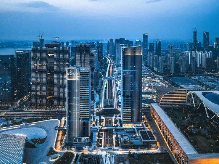 一面正对“日月同辉”和市民中心,没有偏角,更没有遮挡。杭州「新世纪中轴龙脉」正在这一视线上,自武林中心—市民中心—奥体中心,这一格局奠定了杭州整体城市的气运走向。