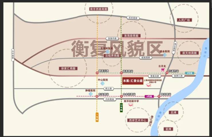 汇景云庭紧挨着徐汇区复历史风貌区,毋庸置疑这样的地段享受的必然也是城市塔尖级的高能配套。