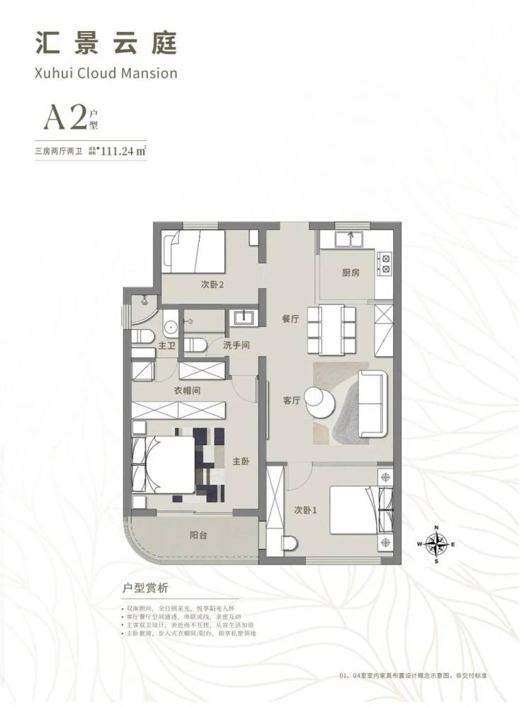 汇景云庭目前在售少量建面111-115㎡3房2厅2卫。