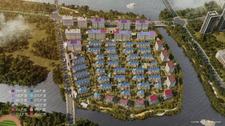 沿湖双拼:建筑面积约410-504㎡湖心岛居院墅(湖墅)
