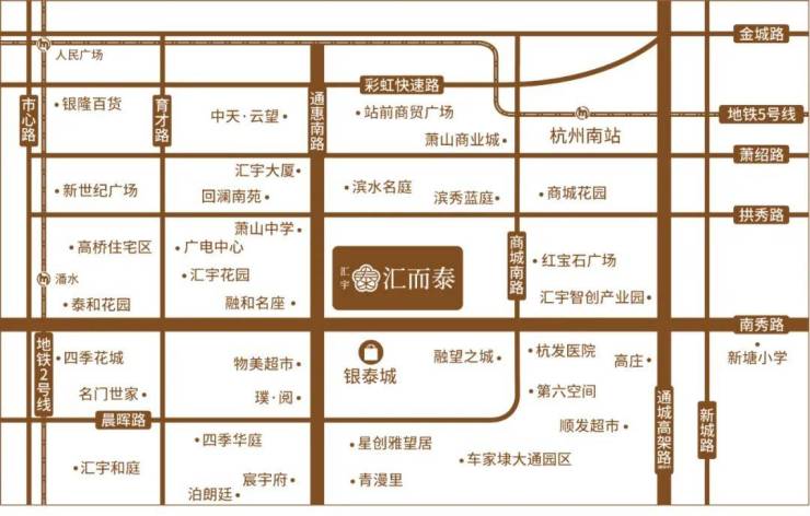 东西向的南秀路,串起市心路、博奥路、风情大道;南北向的通惠路直接连通通城高架,15分钟速达机场快速路、彩虹快速路、钱塘快速路等六大城市命脉。可以说从这里出发,既能虹吸萧山全域消费力,又能轻松接驳主城区及周边客群,真正实现"半小时财富圈"全覆盖