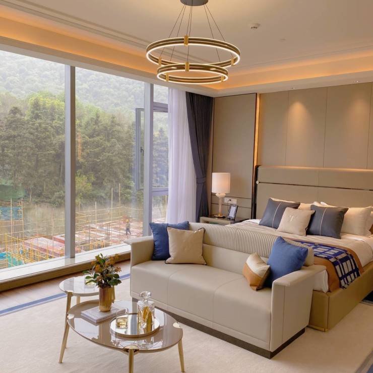 项目依山而筑,汲取绿坡起伏的大地艺术,外立面以前沿建筑审美的全玻璃box,镌刻璀璨天际线,缔造之江此前未见的建面约300方滨江风格著作。