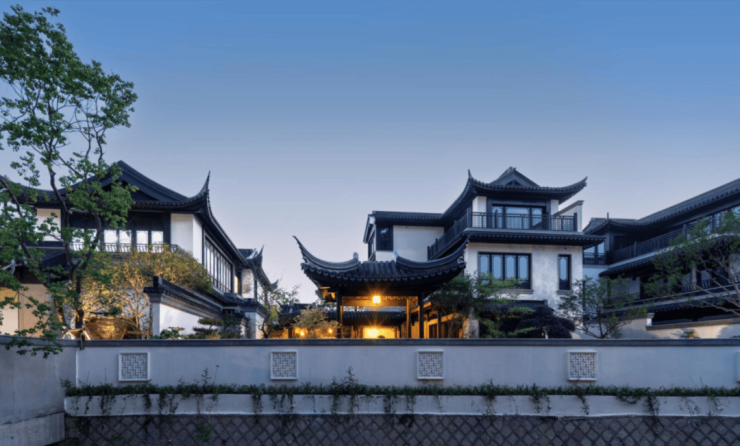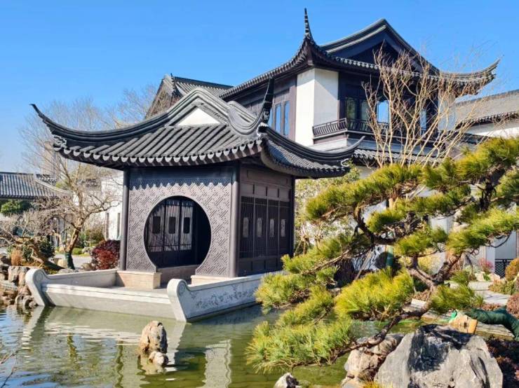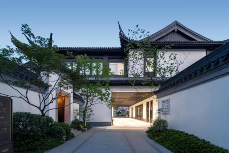 在手法上,汲取江南造园精髓,复刻水乡记忆,在园林中叠山理水,复兴中国文化高峰时期的宋韵美学,打造亭台楼榭、小桥流水,营造出了江南中式步步尊崇的三重归家礼序