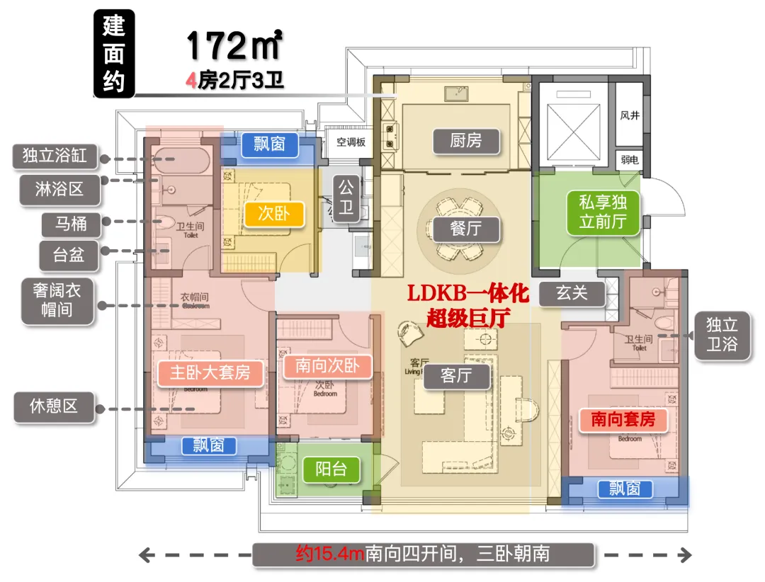 在售 户型方正 主卧带卫 双阳台 厨卫不对门 干湿分离