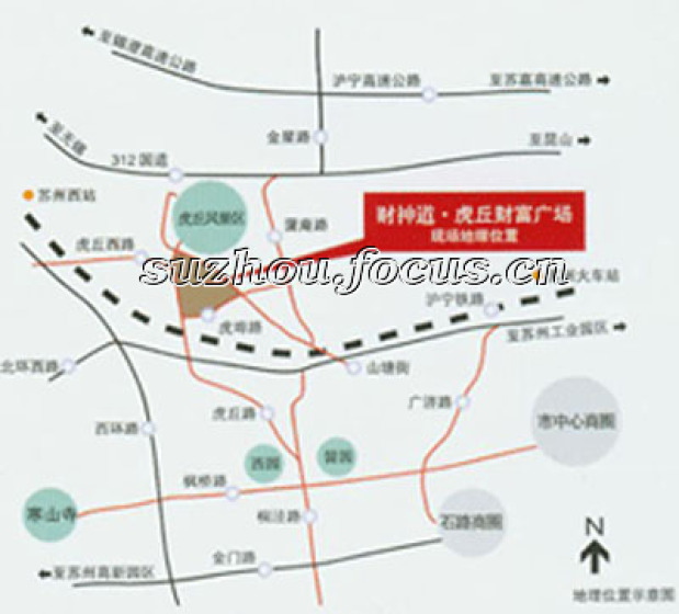 虎丘·财神道位于苏州西北大门,东指苏州新加坡工业园区,西接苏州工业新区,北临312国道。虎丘路、桐泾路、干将路是连接苏州各地的重要通道,312国道、北环路,是连接苏州至上海、至南京长三角各地的快速通道。虎丘·财神道距离市中心人民路观前街商业圈、石路商圈、园区新区均约4-10公里。