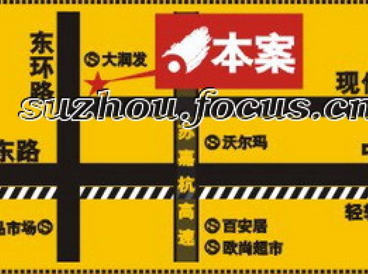 本项目位于古城区与园区交汇区域、东环路现代大道交界口(原苏州百润发大卖场),是进出园区主要的出入口之一,交通极其便利,与规划中的轻轨1号线步行距离仅10分钟。