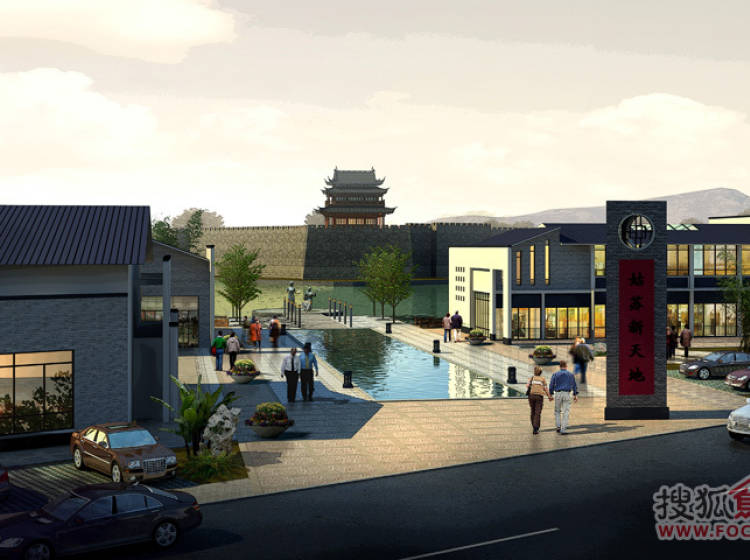 苏州·新天地商业建筑的风貌采用了黑白灰的素雅色调,并增加了垛头、花窗、灰砖等具有苏州特色的元素。地块景点内的景观构筑则采用苏州传统园林中的亭、榭、廊等,作为周围景区游客和商业街内消费人群的户外休息场所。