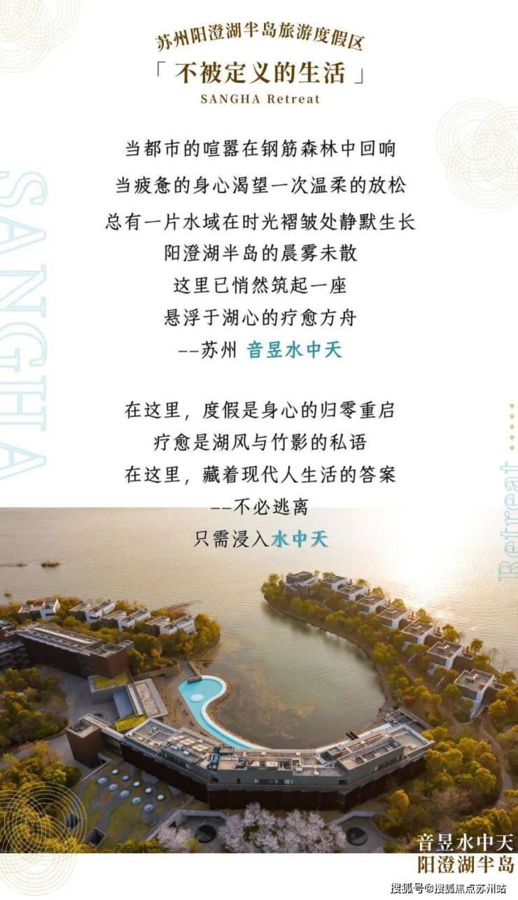 沿着阳澄湖半岛蜿蜒的湖岸向前,有那么一公里多的水天相接处,藏着澄澈且宁静的空间——音昱水中天。「音」即音乐、声音,「昱」即阳光、能量,音与昱互为倒影。在这里,与现代生活的另一种写法不期而遇。