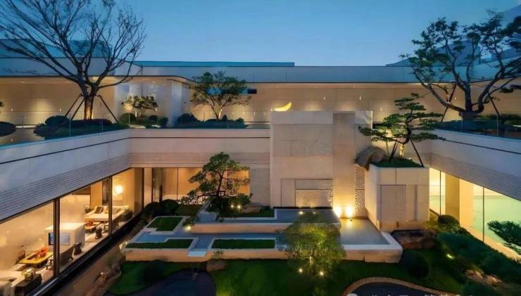 相比于传统紧凑排布的纯叠墅项目,松川境业主有更多大块的景观空间,且整个场景在感受上并没有被建筑隔断,下沉式庭院和双水院景观错落排布,很自然的就连接成为一个整体的大空间。