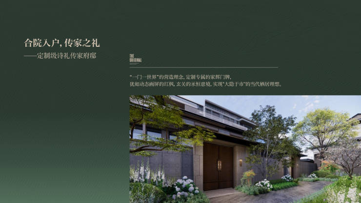 合院就更不用说了,真正的有天有地。总共五层的设计(地上3层,地下2层),通过定制的门徽、屏风和灯具,营造出一种诗礼传家的仪式感。院子也是根据户型精心设计的,有的是三面围合,有的是南北分院,用现代东方的手法,打造出一个宁静平和的私家天地。