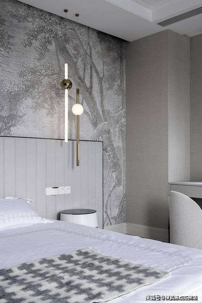 主卧室运用素色当主题,巧妙进行设计层面的良好衔接。在梳妆台和墙体标准融合下,构造更静谧祥和的多功能空间。