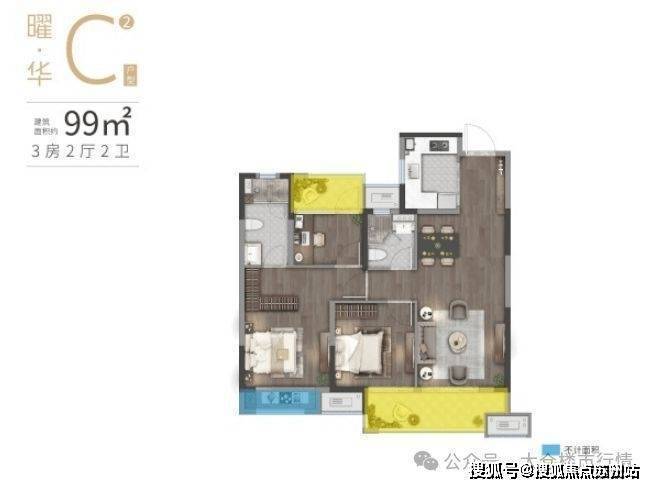 建筑面积约80-119㎡全生命周期户型,二房到四房设计,承载从二人世界到三代同堂的家庭进阶过程,适应不同家庭所需,构筑更为丰盈的生活场景。我们希望为每一户打造的家不是过渡,而是一生居所。