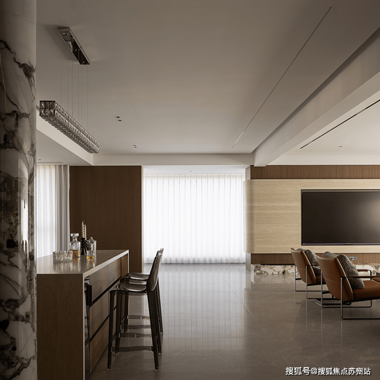 中岛设计既独立又能和其他空间联动起来,变成一个更大的休闲区、社交场,可开可合、可静可动,让空间有了更多的可能性。