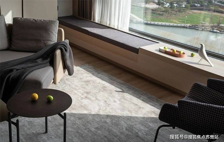 客厅整面落地窗在视觉和体验中串联了内与外,最大限度摄取室外自然光线和窗外自然之景,引景入室。