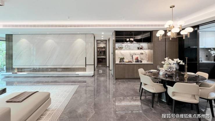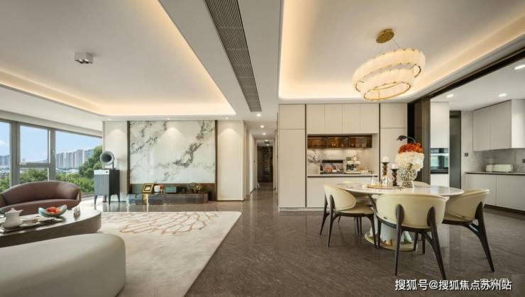 将苏州园林的空间哲思,进行现代转译,旨在通过空间营造放大心理感知面积,并强化居住者的情感连接。以“立体流动的折叠山水”为蓝本,匠心铺陈“一芯一轴双环”为骨架。