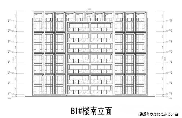 B1#洋房南立面,层高3.2米。