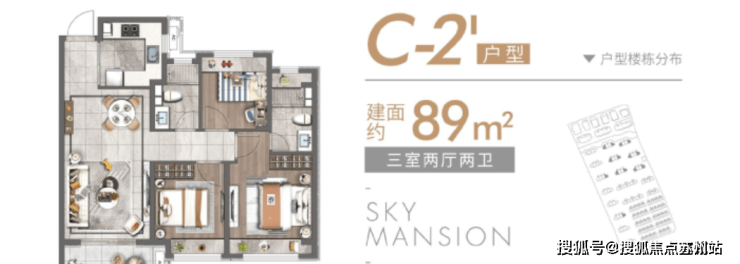 户型:3房2厅,面积在83㎡到89㎡
