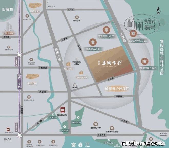 杭房·启润学府尊踞富春核芯,位于东兴路与文居街交叉口。总建面约15万m2。项目距地铁6号线公望街站约1KM,毗邻恩波大道,东连江滨东大道,北连彩虹快速路,无界畅通全城。